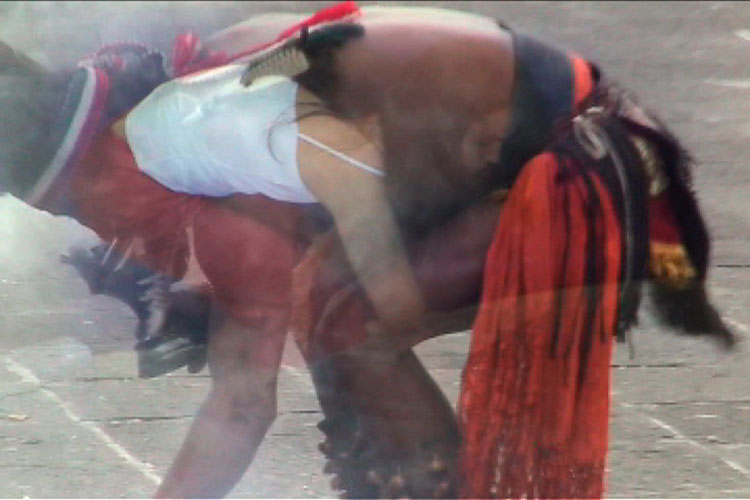 Installation-vidéo-performance créée à partir d’images d’un chaman contemporain captées dans le centre ville de Ciudad de Mexico. Durant la performance, l’artiste en relation avec le Chaman à travers son propre corps, dans une sorte de rituel qui nous amène à réfléchir non seulement aux conséquences de la globalisation sur les cultures autochtones de l’Amérique latine, mais aussi au syncrétisme culturel et à la place qu’occupent la culture et l’art dans les sociétés contemporaines.