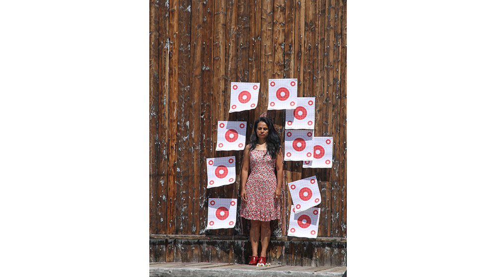 Le mot pérégrination est emprunté au latin preregrinatio, -onis qui désigne un voyage ou un séjour à l’étranger et spécialement, en latin chrétien, la vie terrestre considérée par métaphore comme un voyage loin du Ciel. La langue moderne emploie généralement le mot au pluriel et l’applique à des allées et venues, des déplacements incessants ou à un voyage à l’itinéraire compliqué. Les pérégrinations impliquent de quitter un territoire, la vie quotidienne, nos habitudes. Dans ce sens, les migrations et l’exil sont des pérégrinations. Dans mon travail de création, je m’intéresse au pouvoir symbolique des lieux et des objets. En arrivant à La Pocatière je me suis intéressée au terrain de jeu de balle. La piste de course, les maisonettes et la grille m’ont ramenée à d’autres temps, d’autres lieux… à mon enfance et mon adolescence en Colombie. J’ai décidé d’explorer cet espace en compagnie d’autres femmes immigrantes de La Pocatière, comme une traversée de notre mémoire individuelle et collective.