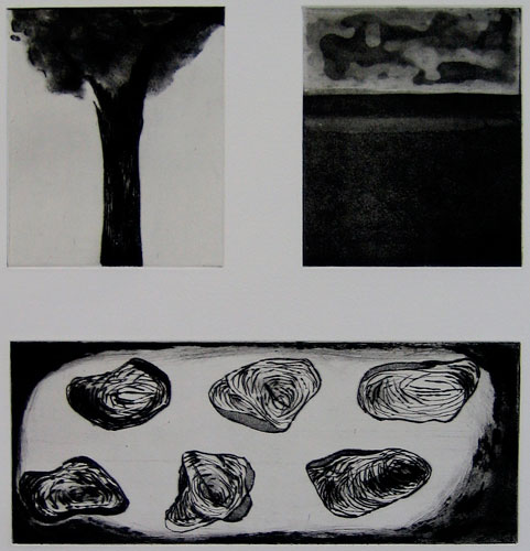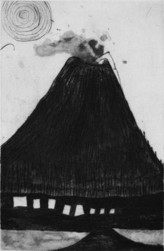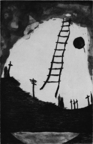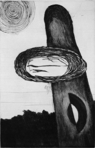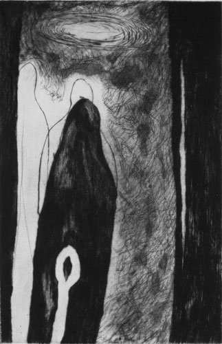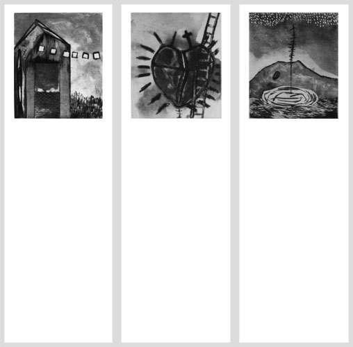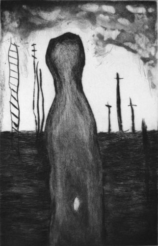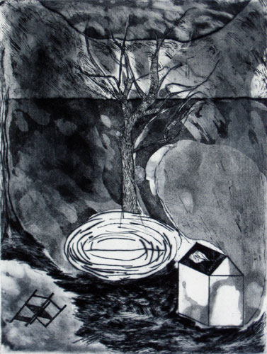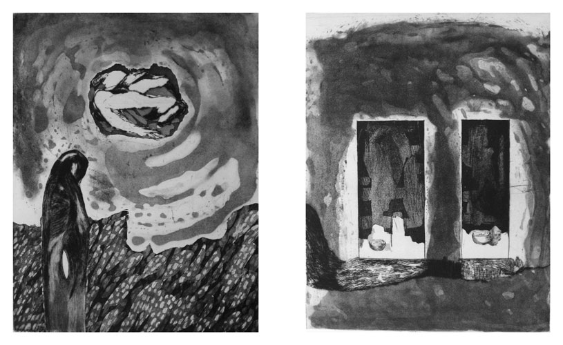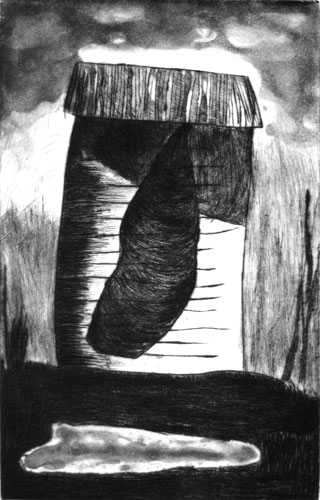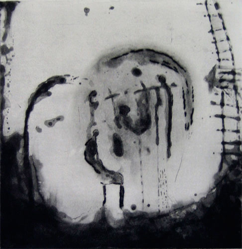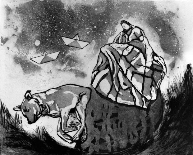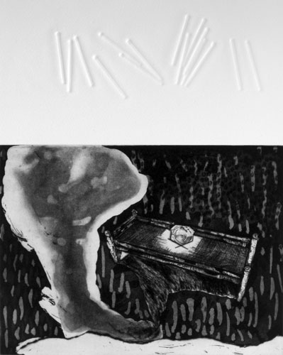 Entre les cendres et les étoiles (2006) Pointe sèche, aquatinte, chine collé. Salon b, Montréal, Canada – 2006