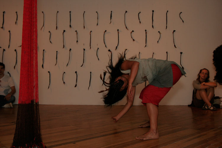 Installation performative issue d’une réflexion sur ce qui est considéré comme un drame collectif en Colombie mais aussi dans bien des régions du monde: le déplacement forcé de populations entières à cause des conflits armés. Peur, isolement, danger, mouvement, cohésion sociale, libération, agression, errance, déracinement, sont autant de sentiments contradictoires qui émanent de la puissance symbolique des objets, qui prennent d’autant plus vie que l’artiste convertit son corps en espace de travail créatif lors de performances en direct. Alors que la vidéo intégrée à l’installation nous présente trois survivantes, trois femmes qui transforment la violence en poésie, le traitement artistique des images permet un dialogue renouvelé avec le volet installatif de l’œuvre.