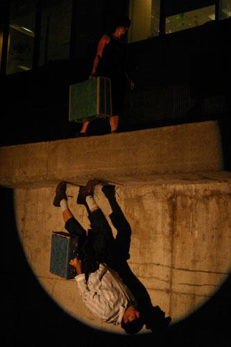 Œuvre interdisciplinaire créée lors d’une résidence au MAI (Montréal arts interculturels). Se laissant balloter, remuer par les mots et les vastes images du poète chilien Pablo Neruda en fuite vers l’exil, les artistes s’approprient l’architecture naturelle des lieux du spectacle et transposent en mouvements et en actions le périple sinueux et truffé de rencontres du poète chilien. Invité à parcourir divers espaces, des plus sombres aux plus étoilés, le spectateur découvre que Fuite, c’est une façon de se dérober, mais c’est aussi une occasion de résister, de reconstruire poétiquement la réalité.