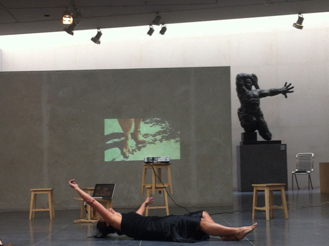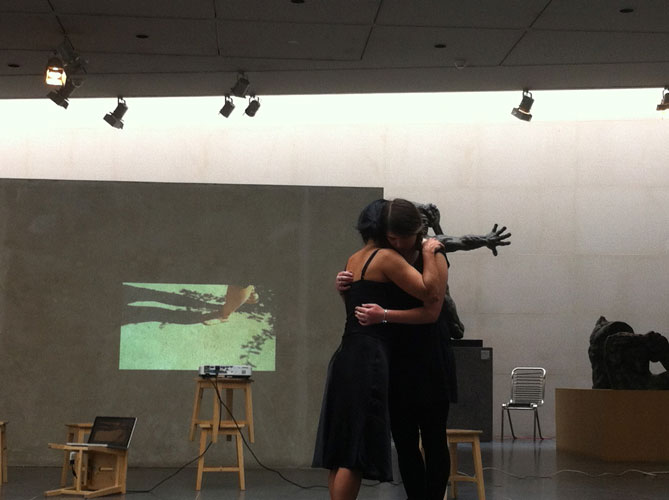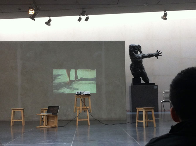 Dans le cadre de l’atelier performance vidéo, Ludovic Fouquet (compagnie Songes mécaniques, Blois) et ses étudiants de l’Institut d’Études théâtrales (Université Paris 3-Censier) investissent l’extension Portzamparc du Musée Bourdelle à l’occasion d’une résidence d’une semaine. Le défi : proposer une rencontre inédite entre une sculpture, une image et un performeur, une autre manière de découvrir les œuvres de Bourdelle. Confronter corps sculpté et corps vivant, par le biais d’une image vidéo projetée dans l’espace ou directement sur l’œuvre, sur son socle. Corps, sculpture, image, espace.
