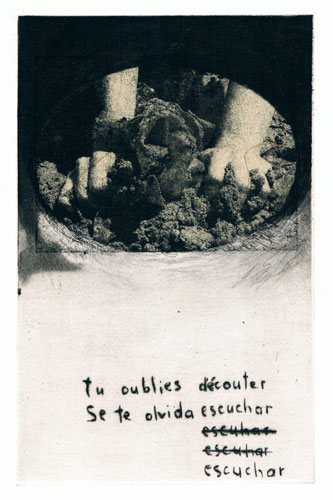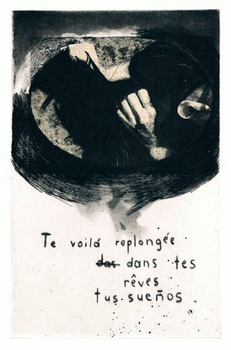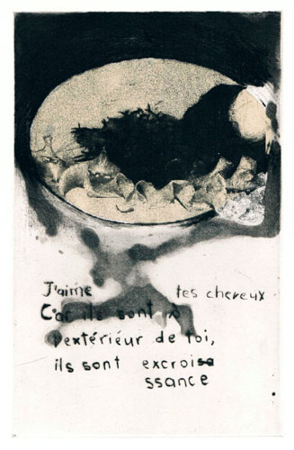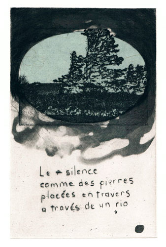 Photogravure, aquatinte, chine collé, pointe sèche.