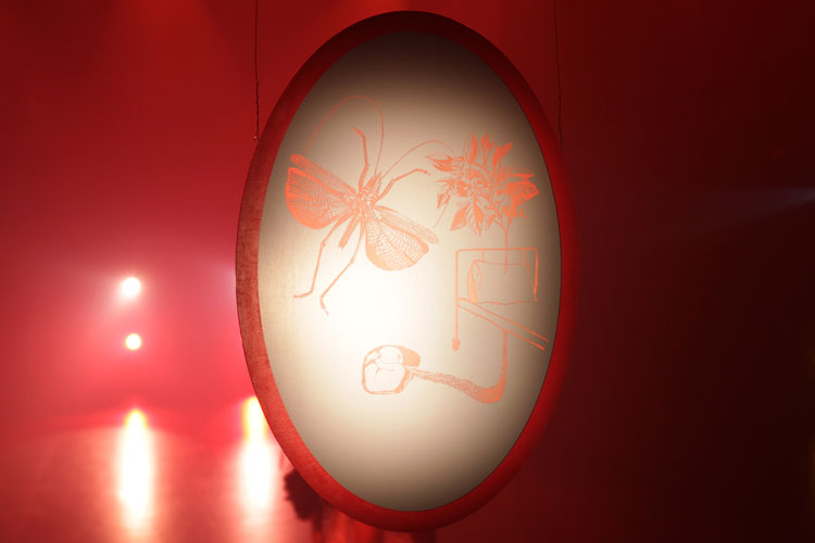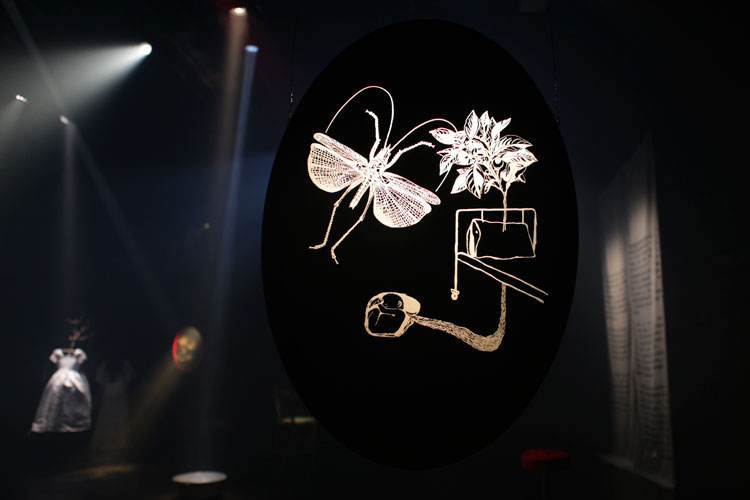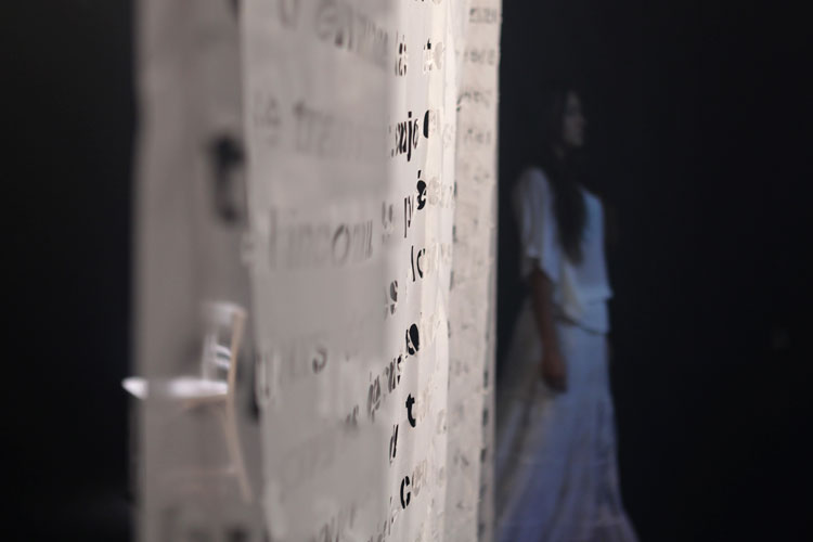 Entre arts visuels, performance et théâtre, l’installation performative L’Envers des îles blanches se présente sous la forme d’un univers onirique où s’agencent images, mots, danse, son, écriture. S’inspirant librement de trois nouvelles du Nobel de littérature colombien Gabriel García Márquez, l’artiste interdisciplinaire Claudia BERNAL nous livre sa vision de La douleur des trois somnambules, La femme qui venait à six heures et Ève à l’intérieur de son chat, en invitant les spectateurs à une déambulation dans des espaces riches en images, où la vie, la mort, la naissance, la putréfaction, le songe et la réalité ne sont qu’une seule et même chose; où le temps et l’espace sont définitivement déréglés. Lors de cette création, l’artiste s’est intéressée particulièrement à l’intégration du texte en tant que matériau plastique dans l’œuvre interdisciplinaire ainsi qu’à la transposition visuelle et sonore du texte.